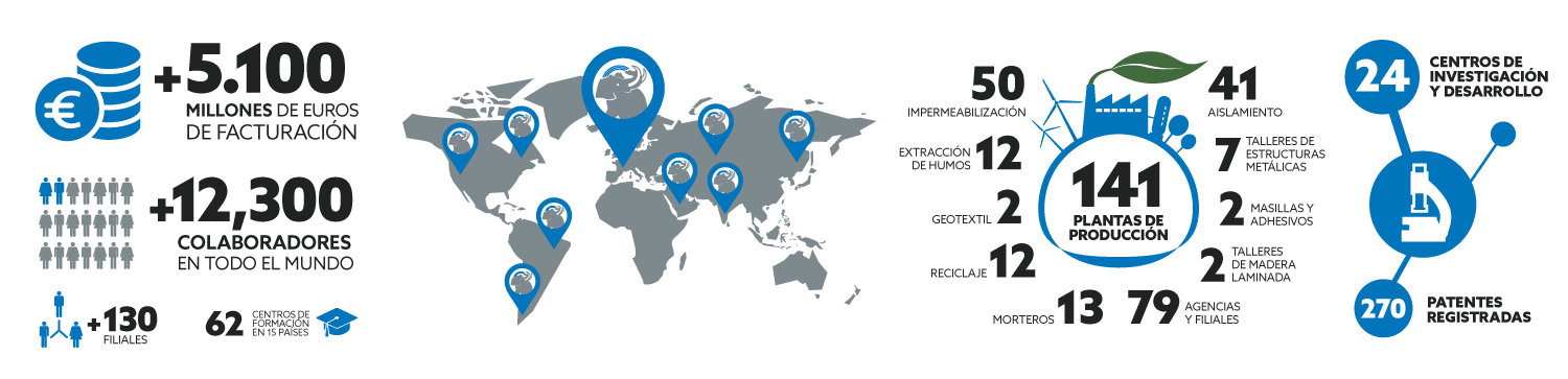 SOPREMA emplea en la actualidad a 11.235 profesionales, con una facturación de 4.840 millones de euros en 2023, 141 plantas de producción y más de 120 filiales de explotación. Además, cuenta con 23 centros de I+D y 48 centros de formación en 15 países.