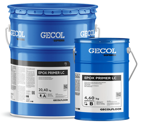 GECOLFLOOR EPOX PRIMER LC resina epoxi 100% sólidos, precargada, especialmente formulada para la utilización como imprimación, capa de regularización y lisaje en sistemas multicapa sobre soportes de hormigón.