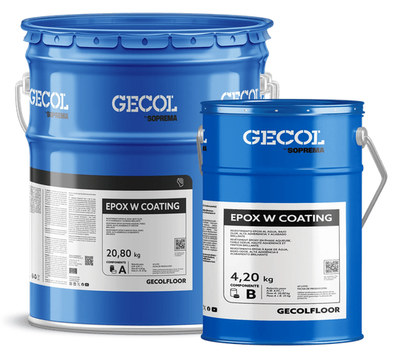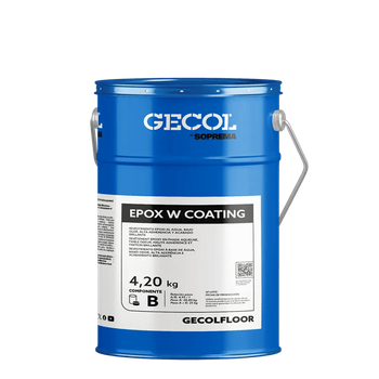 GECOLFLOOR EPOX W COATING es una resina epoxi de dos componentes, base agua, coloreada, especialmente formulada como revestimiento, capa de sellado sobre sistemas autonivelante o multicapa y capa de terminación sobre soportes de hormigón usando la técnica tradicional dos capas como pintura epoxi.