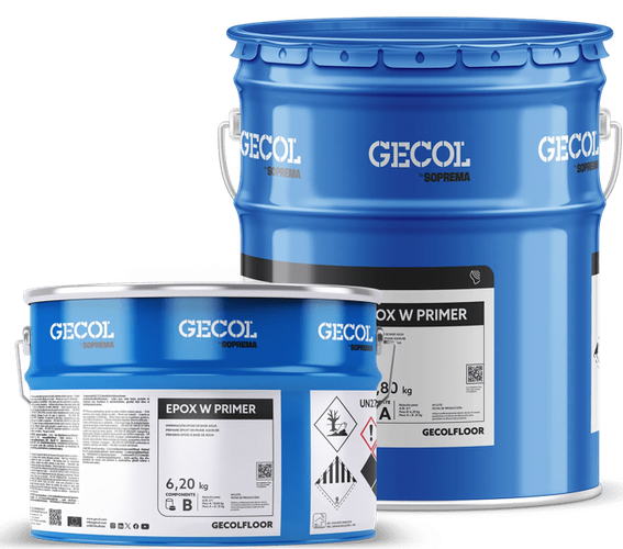 GECOLFLOOR EPOX W PRIMER es una imprimación epoxi en base agua, de baja viscosidad, especialmente formulado para la imprimación de soportes de hormigón como paso previo a la aplicación de un revestimiento epoxi base agua. Válido para soportes con humedades de hasta el 6% MC (máximo valor posible en medidor Tramex).