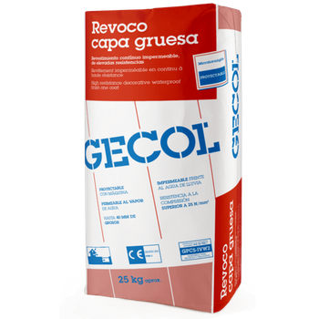 GECOL Revoco capa gruesa est un mortier de revêtement, projetable, à hautes résistances pour la finition de couches épaisses de façades.