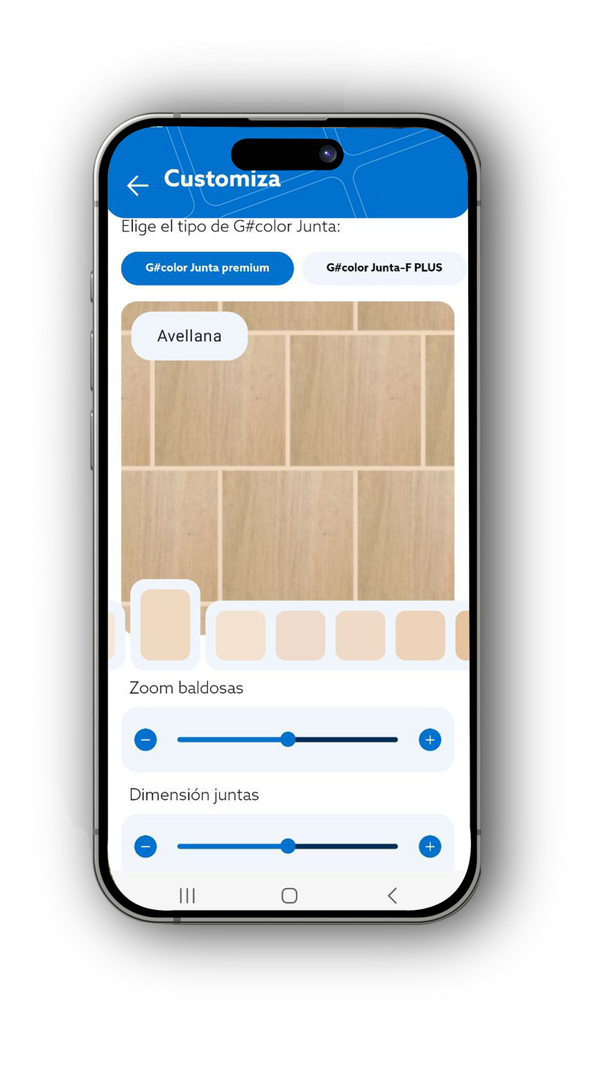 La aplicación GECOL Juntas te permite realizar en tiempo real una simulación del color de las juntas con la baldosa. Tan solo con una fotografía, podrás elegir el formato que más se ajuste a la cerámica, comparar entre los distintos colores de la gama y guardar el proyecto para revisarlo cuando lo necesites.