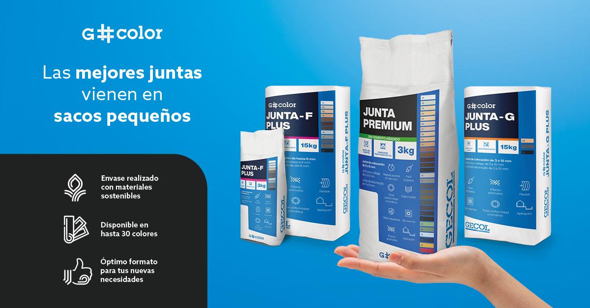 Por su parte, los sacos de G#color Junta- F PLUS y G#color Junta-G, pasan de 25 kg a un formato más manejable de 15 kg para facilitar el trabajo en obra.