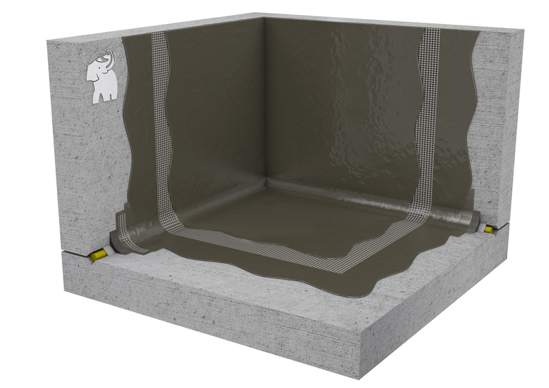 Impermeabilización de depósito con SOPRADRY F de SOPREMA, mortero monocomponente de 2 mm, resistente a aguas agresivas y presión negativa. Preparación con GECOL DESINCRUSTANTE. Cumple UNE EN 1504-2 y marcado CE