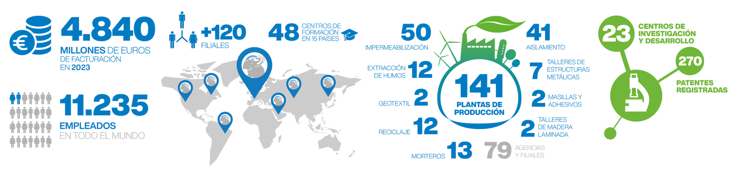 SOPREMA emplea en la actualidad a 11.235 profesionales, con una facturación de 4.840 millones de euros en 2023, 141 plantas de producción y más de 120 filiales de explotación. Además, cuenta con 23 centros de I+D y 48 centros de formación en 15 países.