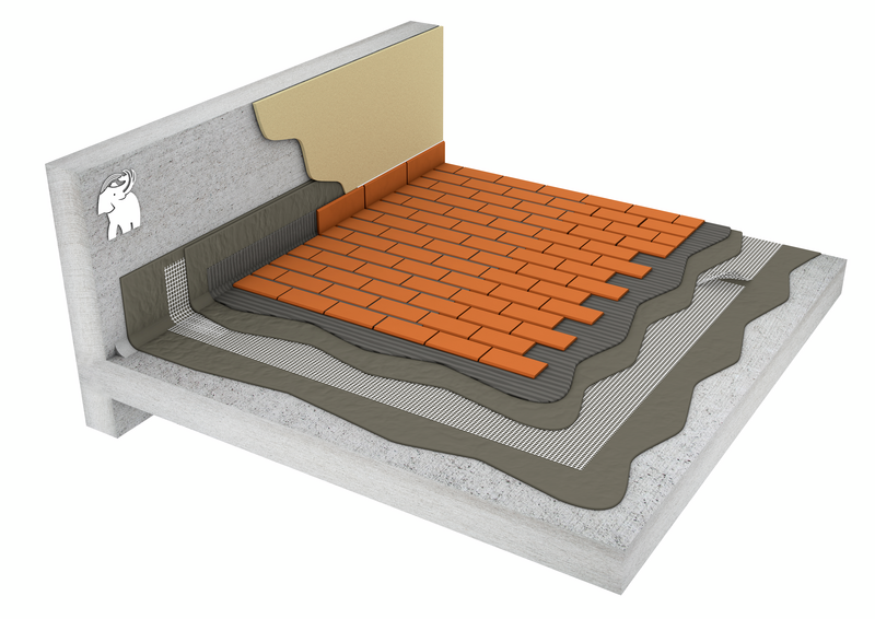 Impermeabilización con membrana cementosa bicomponente sobre Ventajas soporte de hormigón con acabado de rasilla o baldosa aplicada con adhesivo-gel.