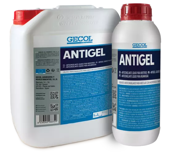 Aditivo líquido anticongelante y libre de cloruros. En ambientes fríos, disminuye la temperatura de congelación, reduciendo el riesgo de formación de cristales de hielo en hormigones y morteros base cemento.