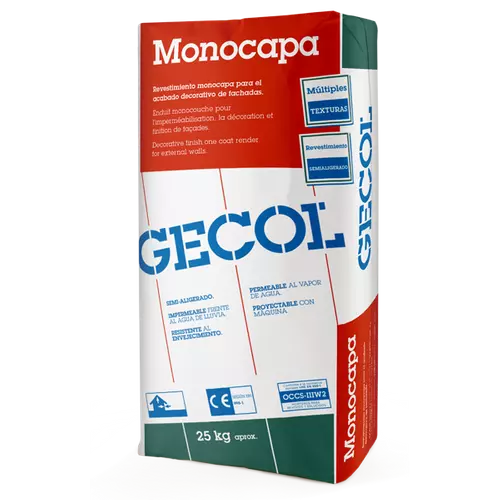 OC CS III W2 según UNE EN 998-1 Revestimiento monocapa, semi – aligerado, para el acabado decorativo de fachadas.