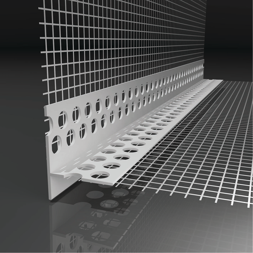 Perfil con goterón oculto de PVC con malla de fibra de vidrio álcali-resistente y certificada ETAG 004.