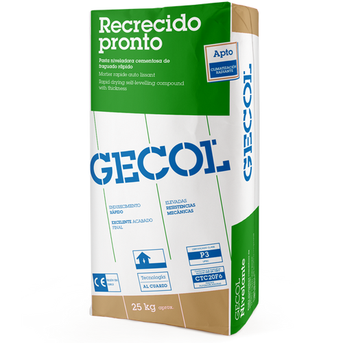 EN CT C30 F6. GECOL Recrecido pronto es un mortero premezclado cementoso, de secado rápido, listo al uso, para la realización de recrecidos.
