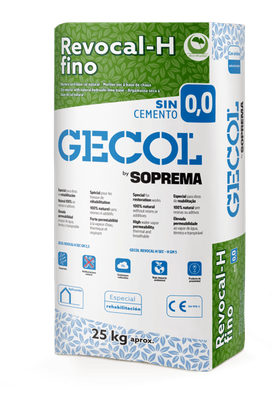 EN CR CS-III W2. GECOL Revocal-H fino es un mortero de revestimiento continuo, en base a cal natural 0'0 cemento y puzolanas naturales. Diseñado para la decoración, renovación e impermeabilización de fachadas en acabado fino.