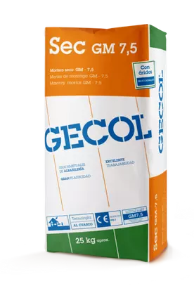EN GM-5 / GM-7,5. Mortero seco de alta calidad y granulometría compensada para usos de albañilería: montaje y levantamiento de muros, regularización y saneamiento de soportes, etc. Hidrofugados (excepto color gris).