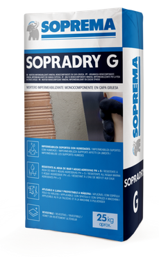 Sopradry G es un mortero monocomponente mineral, para la impermeabilización en capa gruesa.