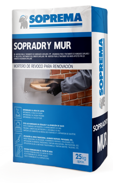 - En muros de piedra, es conveniente fijar una malla galvanizada, aplicando SOPRADRY MUR amasado con GECOL Látex en proporción de agua 4:1.
