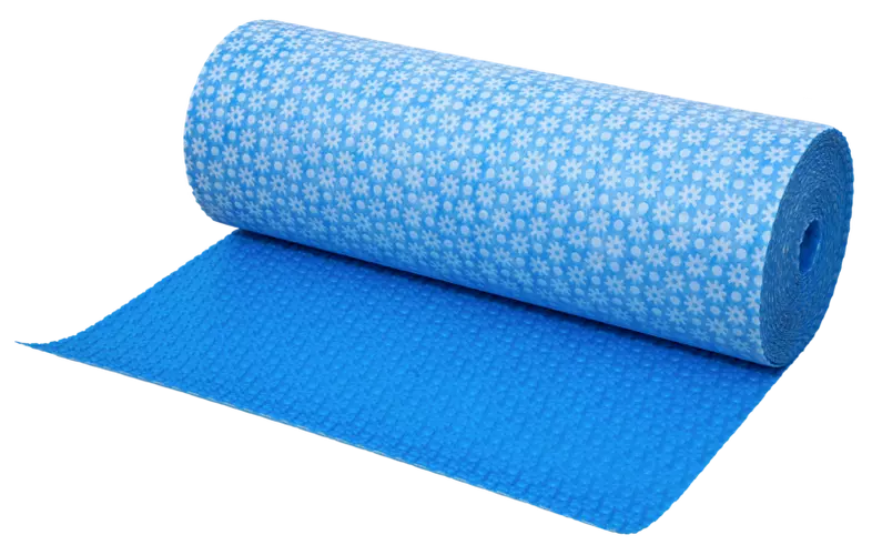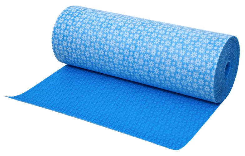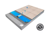 Lámina impermeabilizante de desolidarización de polietileno flexible con geotextil en cara inferior. Impermeabilización y desacoplamiento en sistemas con revestimiento cerámico de gran formato o piedra natural.