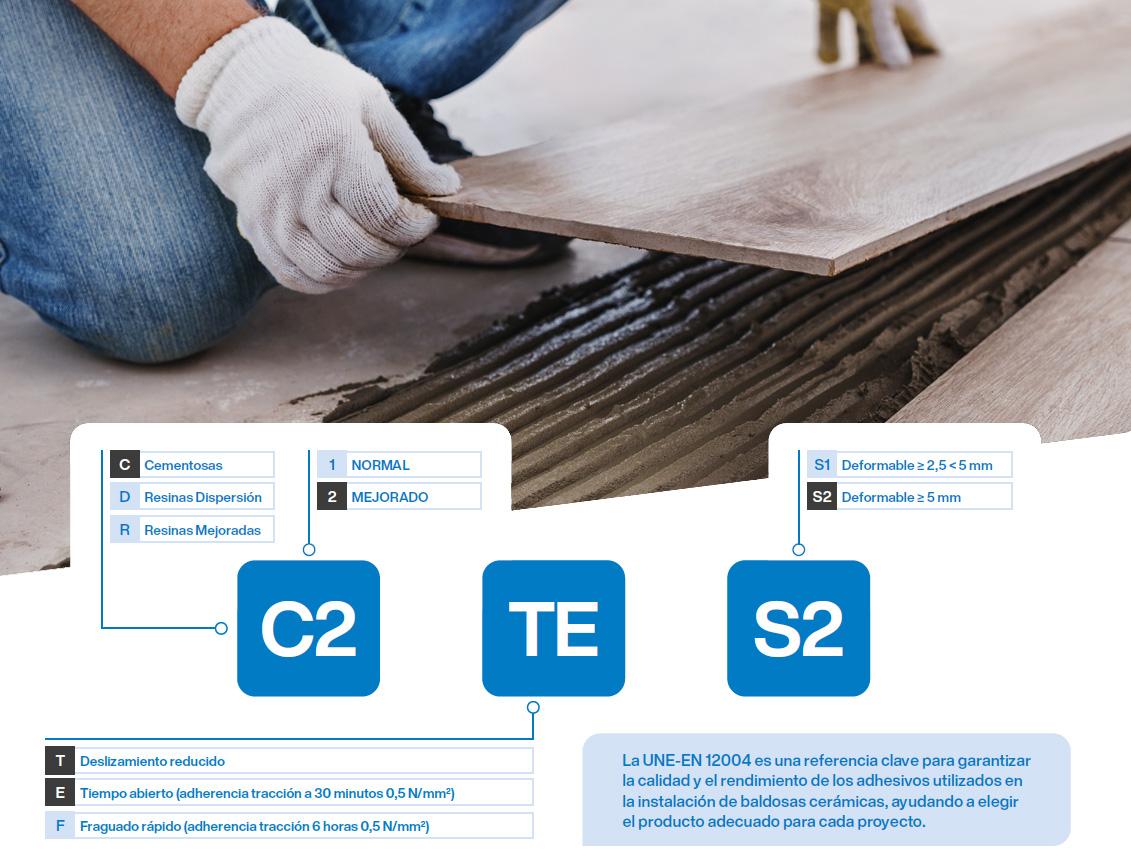 - C2: adhesivo mejorado (adherencia tracción 1 N/mm2).
