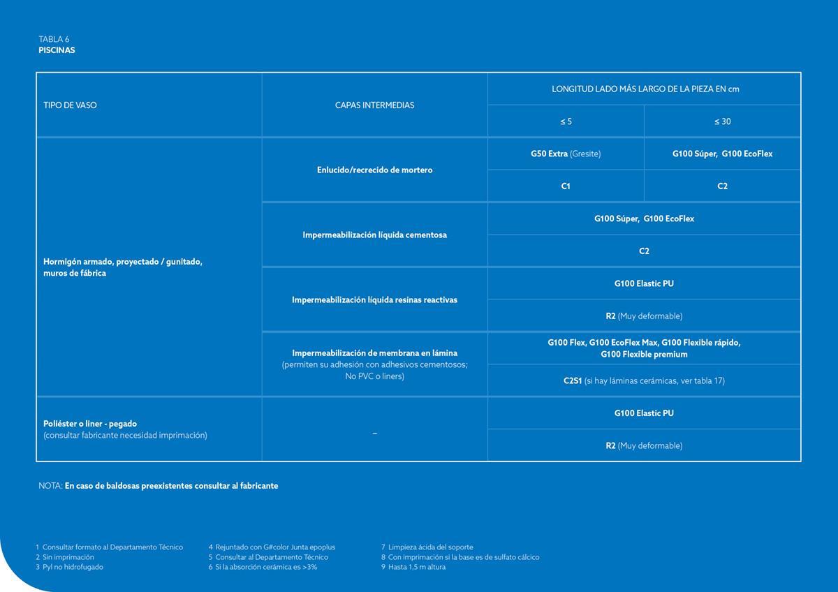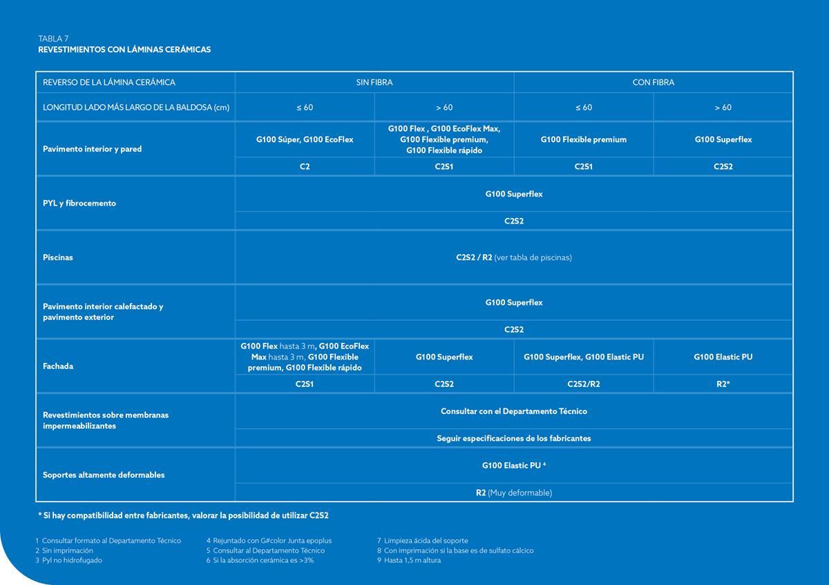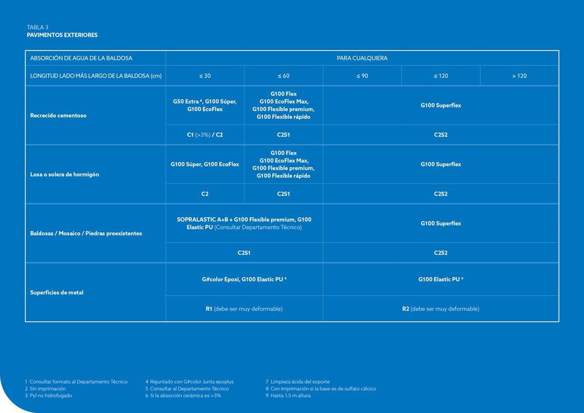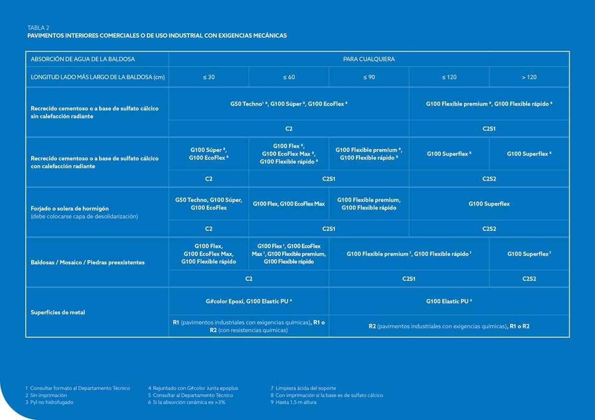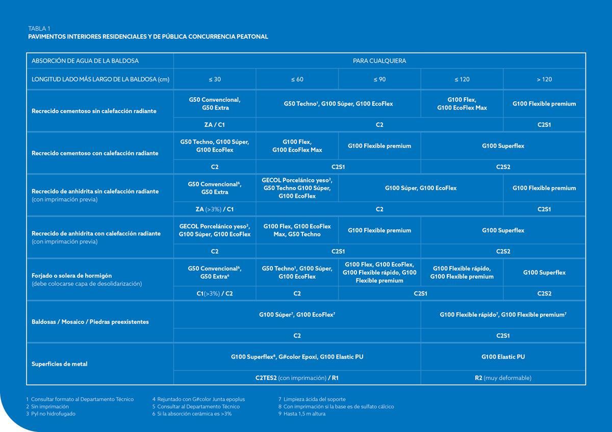 - C1: adhesivo básico (adherencia tracción 0,5 N/mm2).