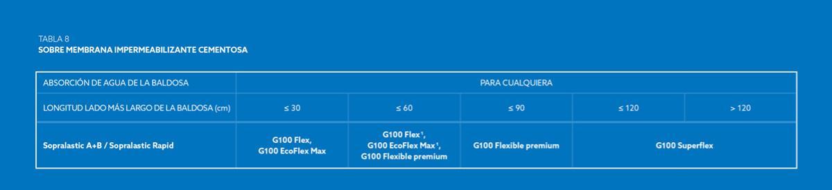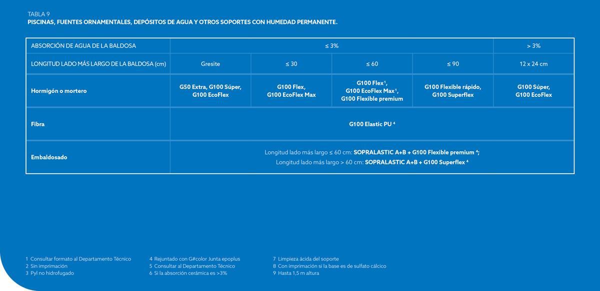 Se dividen en función de su resistencia, flexibilidad y tiempo de secado. Para adhesivos cementosos: