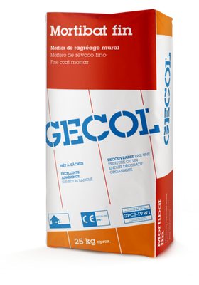 EN GP CS-IV W1 - GECOL Mortibat fin est un mortier de revêtement continu, pour les enduits de façades. Finition fine.Adapté pour les nouvelles constructions ainsi que pour la réfection d’anciens bâtiments.